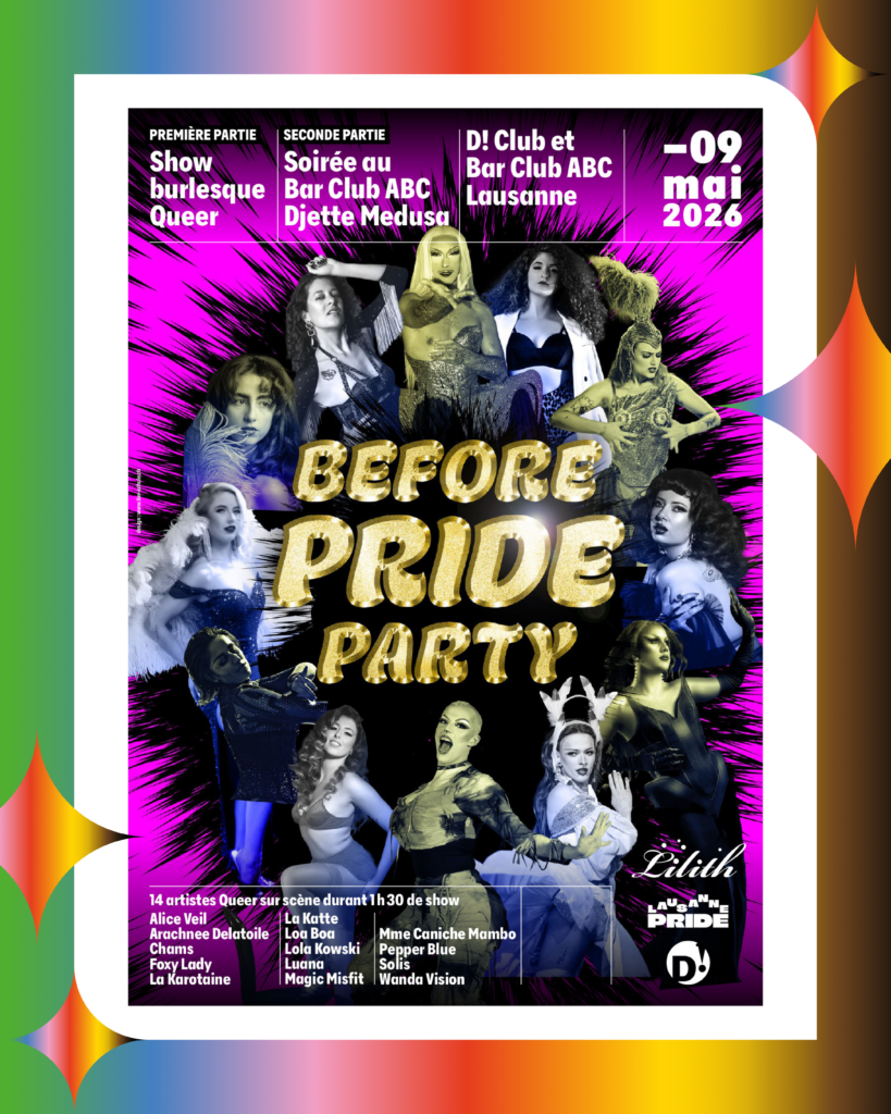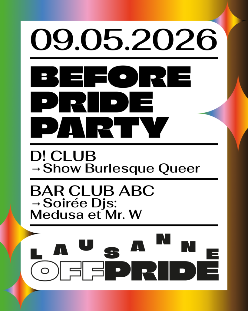 🎉 Un programme festif, engagé et fédérateur vous attend. Ne ratez rien des préparatifs, des temps forts à venir et de toutes les annonces : suivez-nous sur Instagram (@lausannepride) pour rester informé·e·x en temps réel !