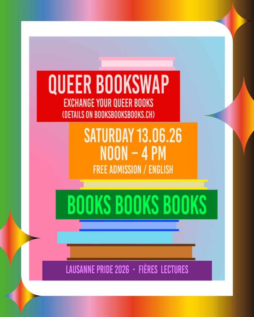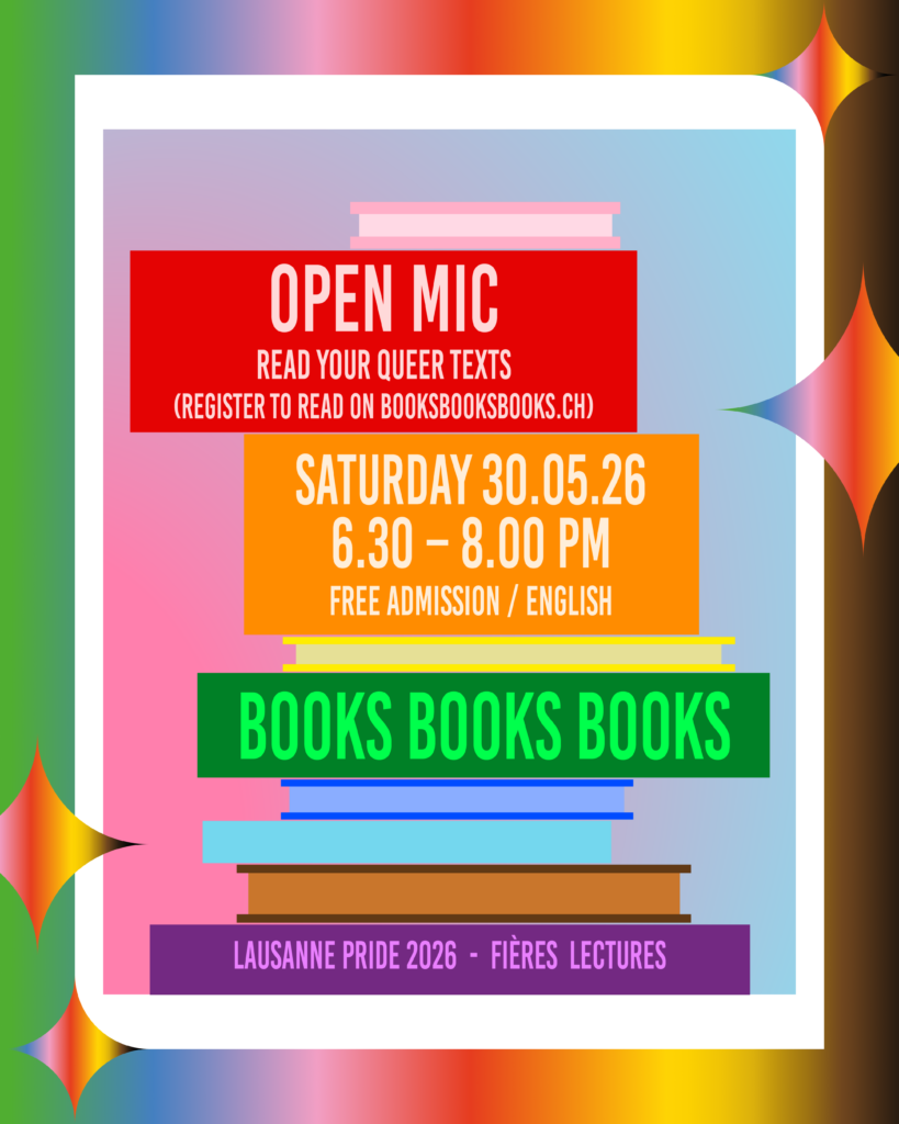 Read your queer texts at the Open Mic night (register to read in April on booksbooksbooks.ch) – free admission / english