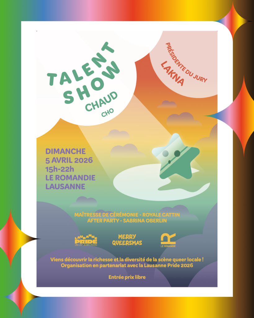 Soirée de lancement de la Pride de Lausanne, avec l’unique 🏆 TALENT SHOW CHAUD CHO 🏆 organisé par @merryqueersmas au @leromandie !